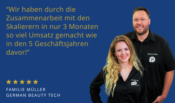 "Das Team von Markus hat meine Erwartungen in jeder Hinsicht übertroffen. Sie nahmen sich Zeit, meine Ziele zu verstehen und boten maßgeschneiderte Lösungen. Die Skalierer Group zeigte ein tiefes Verständnis für meine Vision und trug sie vom ersten Moment an mit. Die Ergebnisse waren beeindruckend – ich kann ihr Team uneingeschränkt empfehlen."